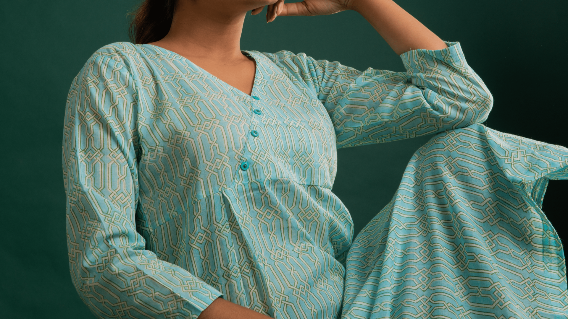 A-line Embroidered Block Printed Cotton Kurti