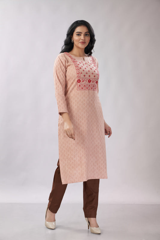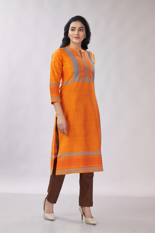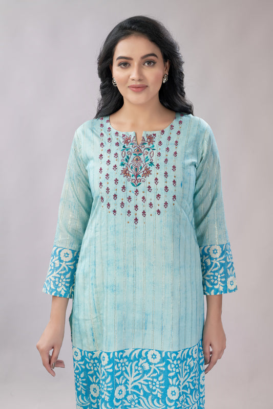A-line Hand Embroidered Block Printed Cotton Kurti